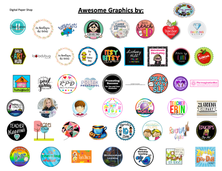 See images above for all creative graphic artists from which clipart was purchased and used in the making of this resource.