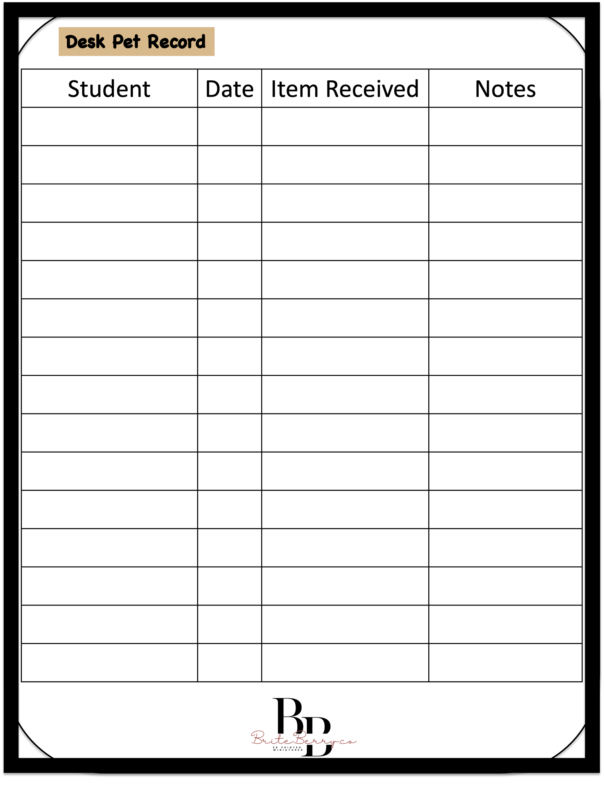- Desk Pet Record Sheet – Track each student’s Desk Pet, bucks, and earned rewards.